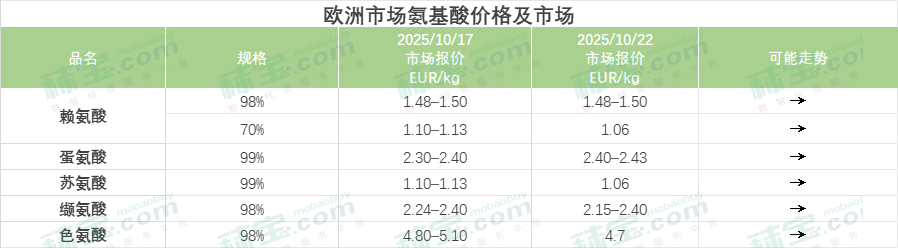 欧洲市场氨基酸价格及市场