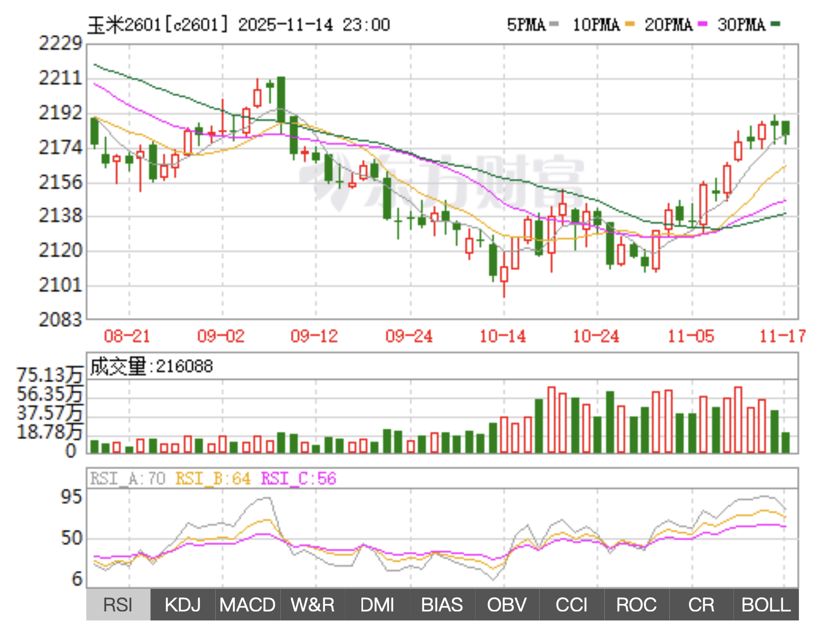 图2 大商所C2511玉米期货价格走势图(日k行情)