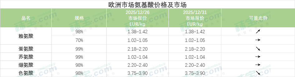 欧洲市场氨基酸价格及市场