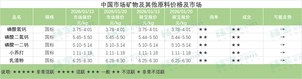 磷酸氢钙市场盘整运行,工厂重心交付前期订单为主。云南地区主流厂家签单价稳定在3800元/吨;湖北地区厂家签单价稳定在4000元/吨;四川地区厂家报价在3900元/吨左右。预计短期内磷酸氢钙市场行情或盘整运行。
