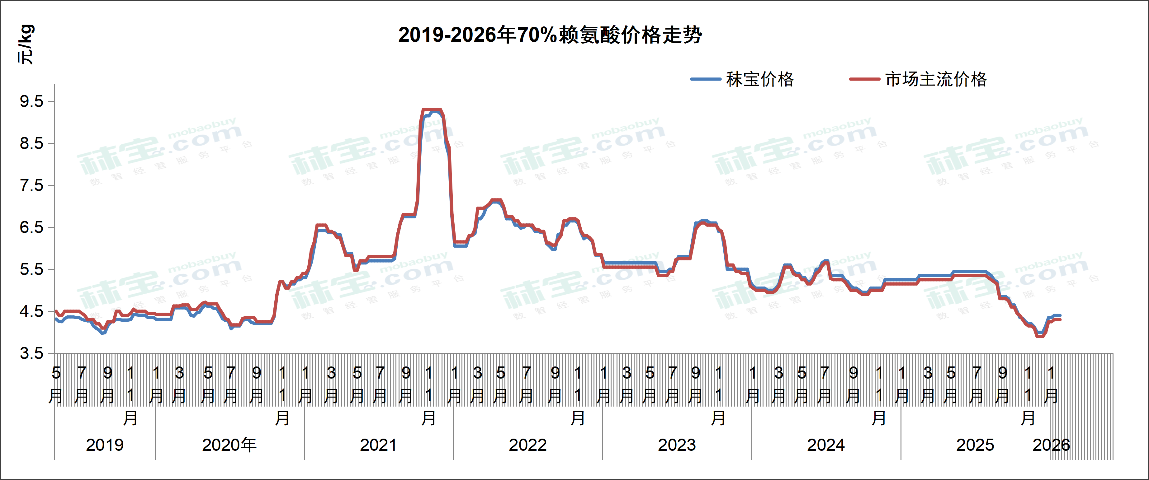 本周中国氨基酸市场赖氨酸、蛋氨酸主流报价偏强,其他品类厂家报价暂时持稳。下游用户春节前采买需求偏弱,大多保持随用随采。赖氨酸市场在玉米价格上涨影响下,厂家表现出较强挺价意愿,终端春节前建库工作基本完成,实际成交有限。蛋氨酸市场厂家主要执行前期订单且交货放缓,新和成当前检修带动主流报价上调,终端少量刚需补货。苏氨酸市场厂家供应稳定,终端优先消耗当前库存,整体交投氛围偏淡。缬氨酸市场现货供应偏紧,但终端补货需求偏弱,签单进度放缓。色氨酸市场稳定运行,下游用户节前随用随补,议价成交为主。