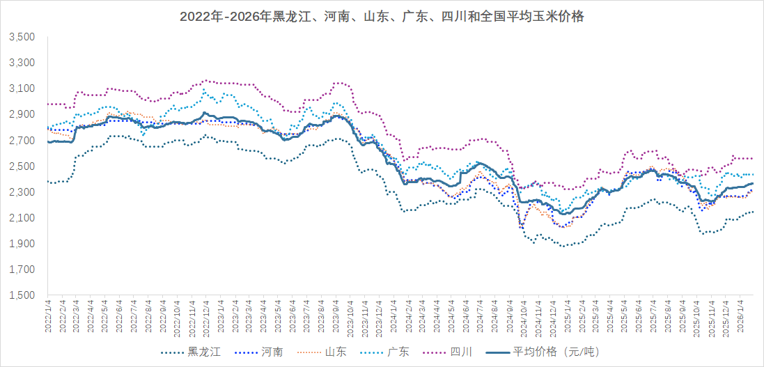 图1主要省份和全国玉米平均价格走势