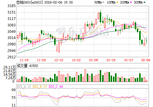 图2 大商所连豆粕2603期货合约走势图(日k行情)