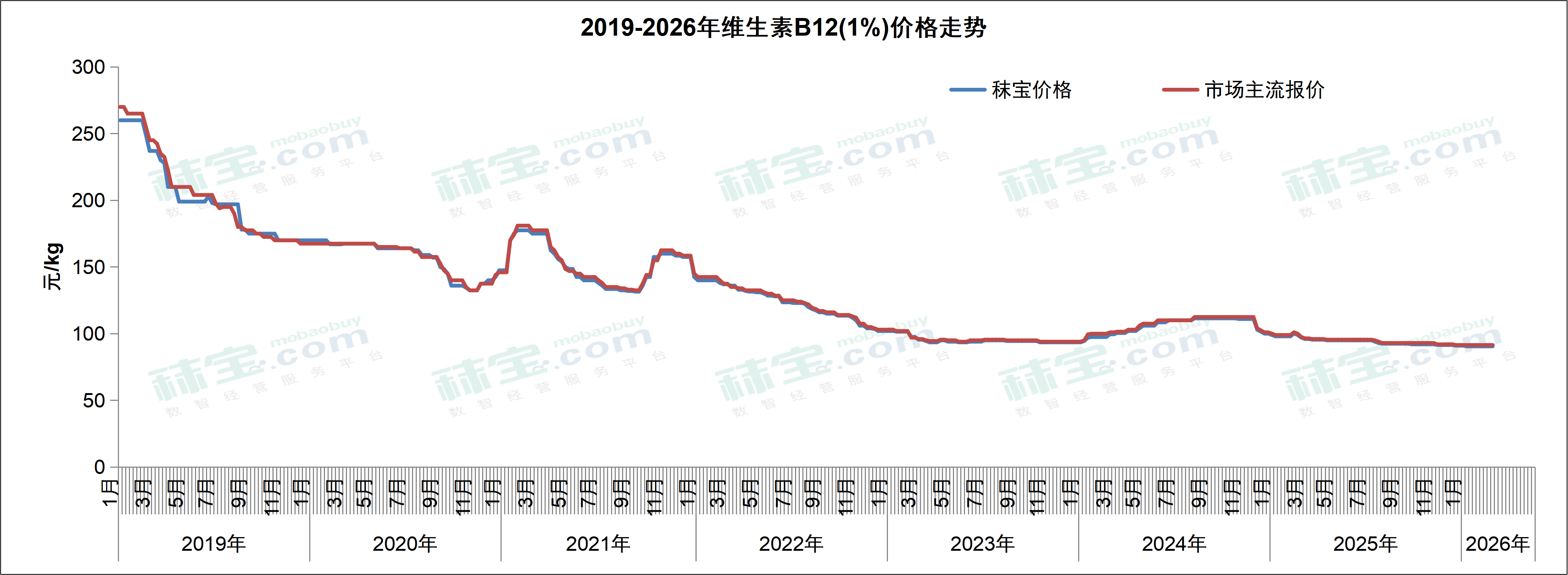 本周维生素B12市场主流价格89-94元/kg。维生素B12购销清淡,市场价格暂稳。