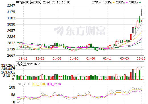 - 利多因素主导市场:美伊冲突升级推升能源及农产品情绪;市场担忧3月下旬至4月上旬可能出现供应问题;进口大豆到港延迟预期;USDA供需报告偏多(全球大豆产量下调100万吨,期末库存下调20万吨)。