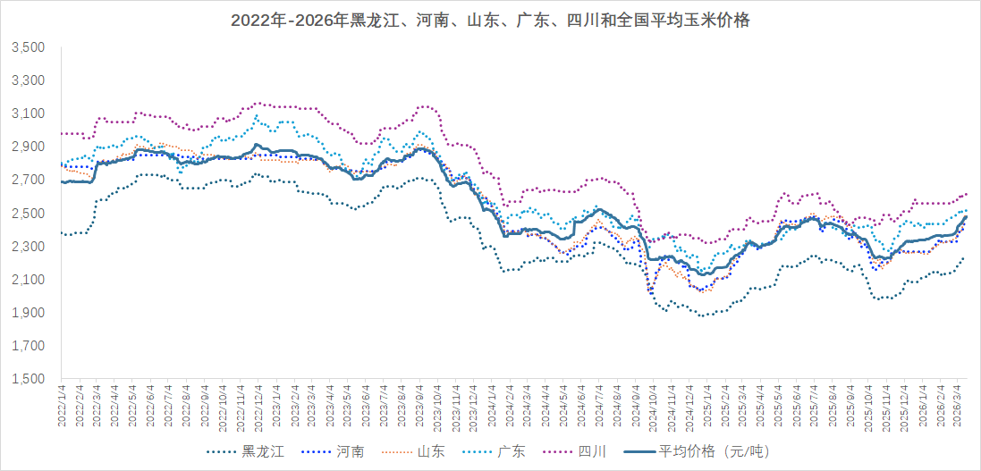 - 东北产区价格震荡调整:干粮保持坚挺,潮粮受气温回升影响小幅松动,深加工企业小幅调整收购价格,国投铁岭、中粮榆树上调20元,赤峰华恒下跌10元。因运费上涨导致外销不畅,部分市场高价回调10元/吨。贸易商在成本支撑下报价坚挺,但多积极出售前期低价库存,粮源以区内流通为主。黑龙江哈尔滨地区中储粮直属库三等新粮收购价格上调至2300元/吨,上涨10元/吨,进一步支撑市场情绪。