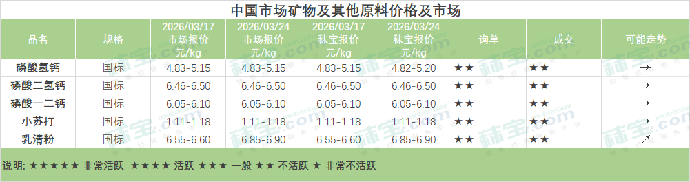 由于目前仍处于传统的需求淡季,饲料级小苏打下游需求一般,小苏打价格维持平稳,上游原料无较大波动。后续需关注上游原料情况和下游需求变化情况。