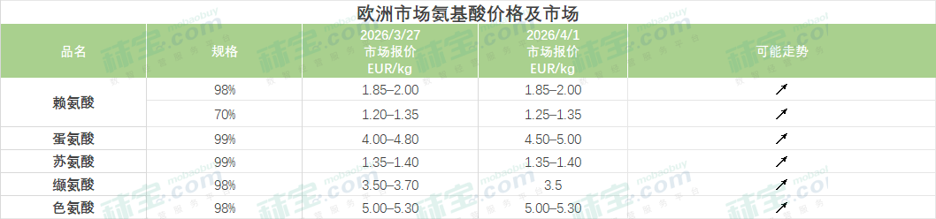 中国氨基酸市场各品类厂家报价稳中偏强,挺价意愿明显,终端消耗当前库存为主,按需随用随采。赖氨酸市场厂家出口持续向好且出口报价略涨,下游用户价格高位下观望居多,实际市场购销偏淡。蛋氨酸市场较为混乱,厂家限量签单,发货为主,下游少量按需补货。苏氨酸市场厂家国内和出口报价均有所上调,贸易渠道惜售,终端零担补货。缬氨酸市场出口表现较好,厂家报价上调,国内终端询单一般,随用随采。色氨酸市场供需紧平衡,厂家报价偏强,部分工厂停报,终端按需议价签单。