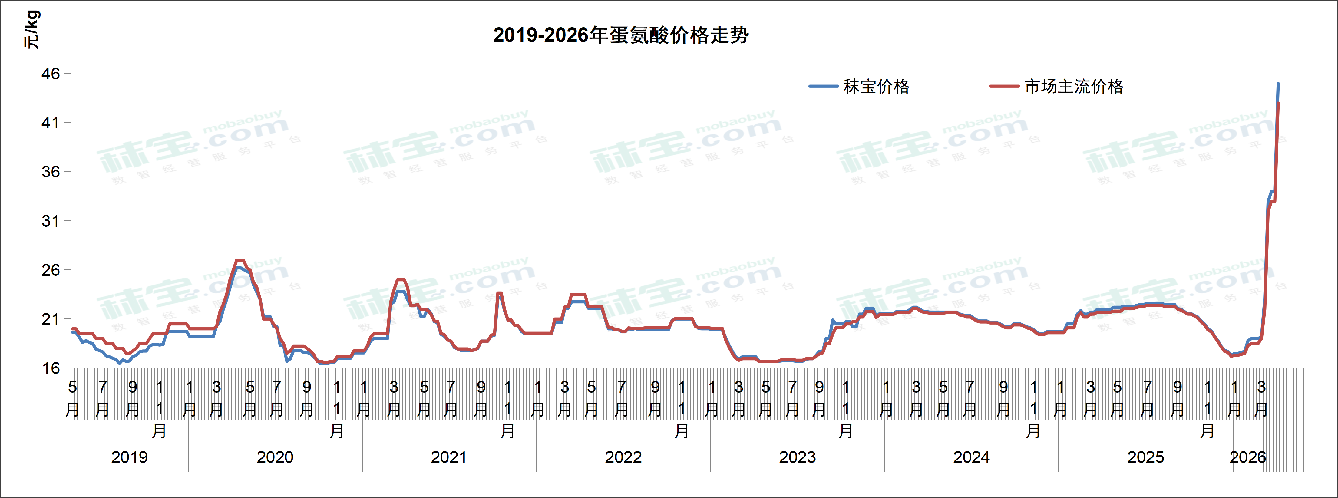 本周欧洲氨基酸市场上涨趋势逐渐放缓,其中最强势的蛋氨酸在本周再次呈现了近15%的价格上涨。伊朗局势的不断变化,至今没有缓解的迹象。众多氨基酸厂家在经历了去年全方位的价格战争后,意欲借此次地缘政治危机彻底调整市场对价格的预期,从去年亏损的销售价格调整到合理盈利范围。原材料的短缺、物流的延迟、开机率的减少、汇率的变化,以及对战争的短期预期和战后中长期影响的预测,使得恐慌追买气氛愈演愈烈,从而也快速推动价格上涨。